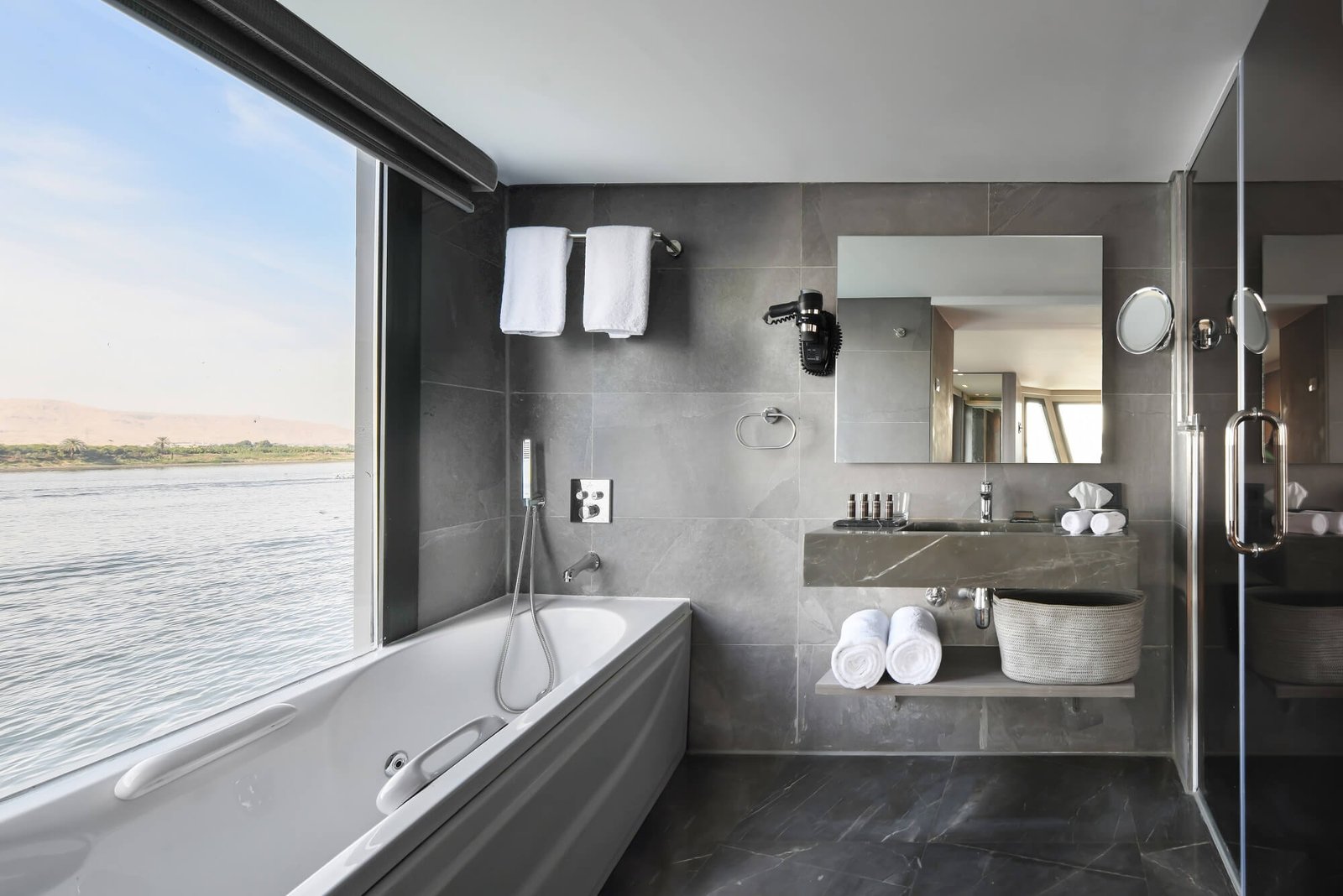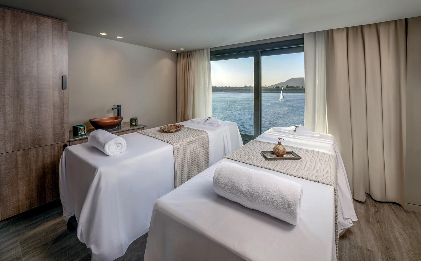 Historia Nile Cruise is a stunning blend of modern luxury and timeless elegance, offering a truly unique journey along the majestic Nile River. Designed to resemble a floating boutique hotel, this 5-star cruise ship combines contemporary comfort with elements inspired by Egypt’s rich heritage. Guests aboard Historia enjoy spacious cabins and suites with panoramic windows, fine dining experiences featuring local and international cuisine, and world-class amenities like a sun deck, pool, spa, and lounge bar.