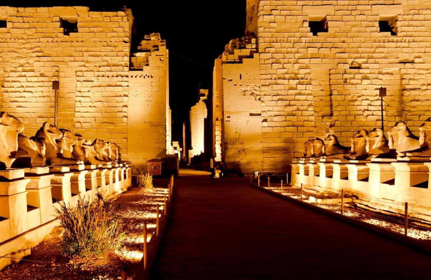 Your magical evening begins with a seamless pick-up from your hotel or Nile cruise, followed by a short drive to Karnak Temple for the Sound and Light Show. As you walk down the impressive Sphinx Avenue, take in the grandeur of the Great Stadium and the majestic Colonnade, setting the stage for an unforgettable experience.
